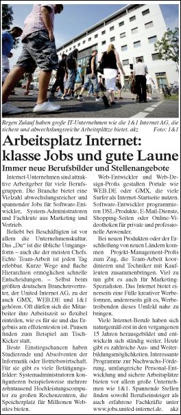 United Internet spricht potenzielle Bewerber an Zur vergrößerten Darstellung bitte auf das Bild klicken |