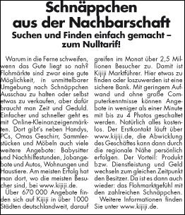 Kijiji: Schnäppchen aus der Nachbarschaft Zur vergrößerten Darstellung bitte auf das Bild klicken |