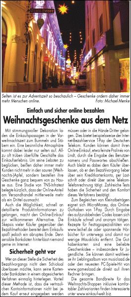 Materndienst Online-Käufe mit T-Pay bezahlen Zur vergrößerten Darstellung bitte auf das Bild klicken |