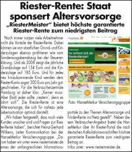 Informationen zur Riester-Rente von Hanse-Merkur Zur vergrößerten Darstellung bitte auf das Bild klicken |